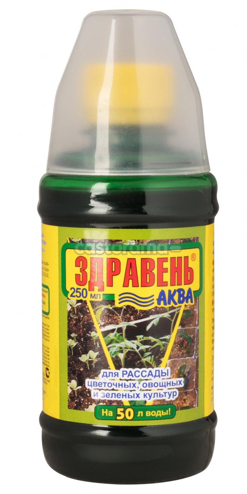 «ЗДРАВЕНЬ-АКВА для рассады цветочных, овощных и зеленых культур» — жидкое комплексное органоминеральное удобрение для корневой и некорневой подкормки рассады (овощных, цветочных и зеленых культур) в личных подсобных хозяйствах.